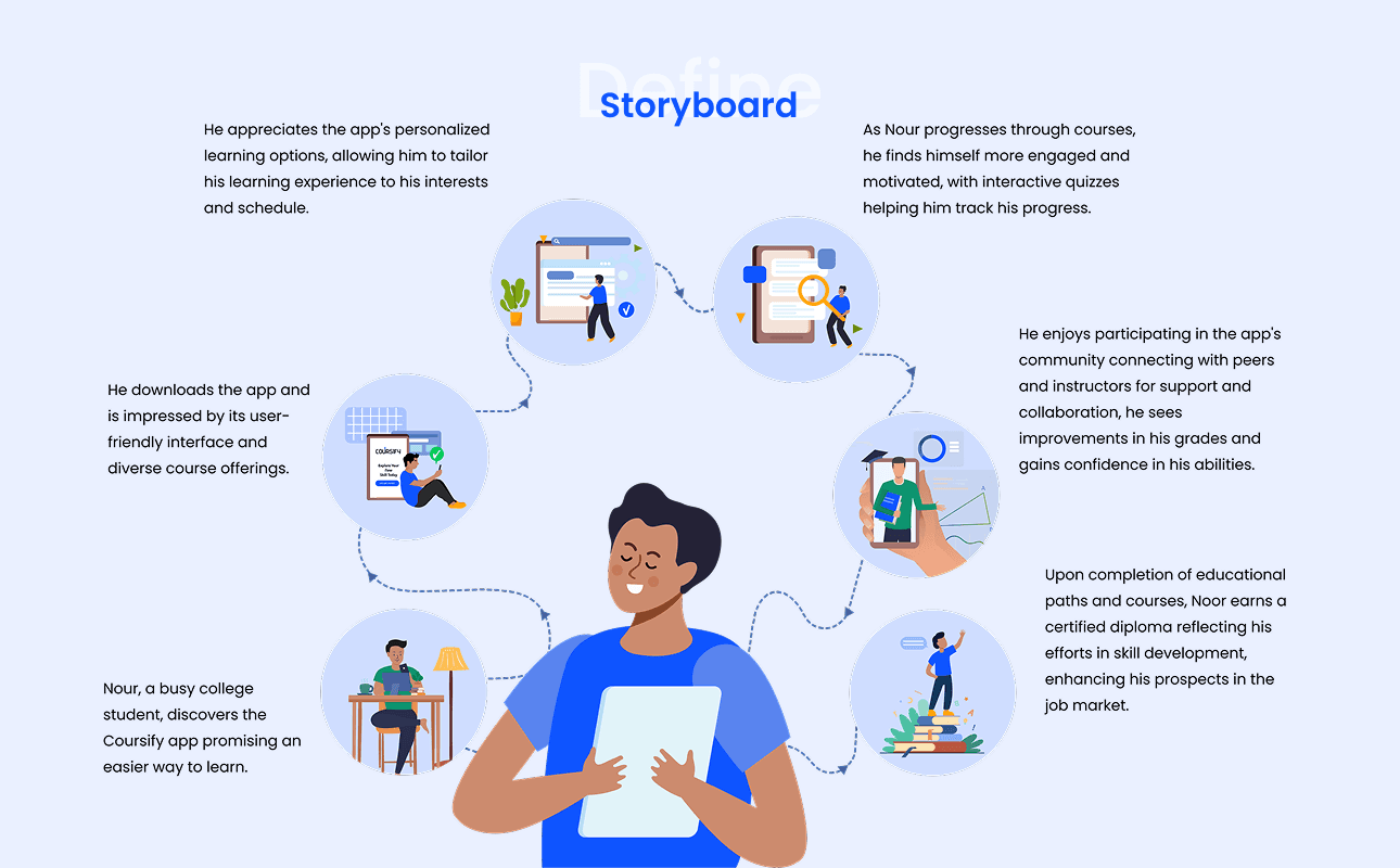 Coursify, a new e-learning platform, aimed to provide an intuitive and engaging learning experience but lacked a clear user-centric design. The challenge was to build the user experience from the ground up, creating a seamless navigation system and incorporating personalized learning features that could engage users from the moment they first opened the app. The goal was to design an experience that was simple, effective, and tailored to each learner’s needs.